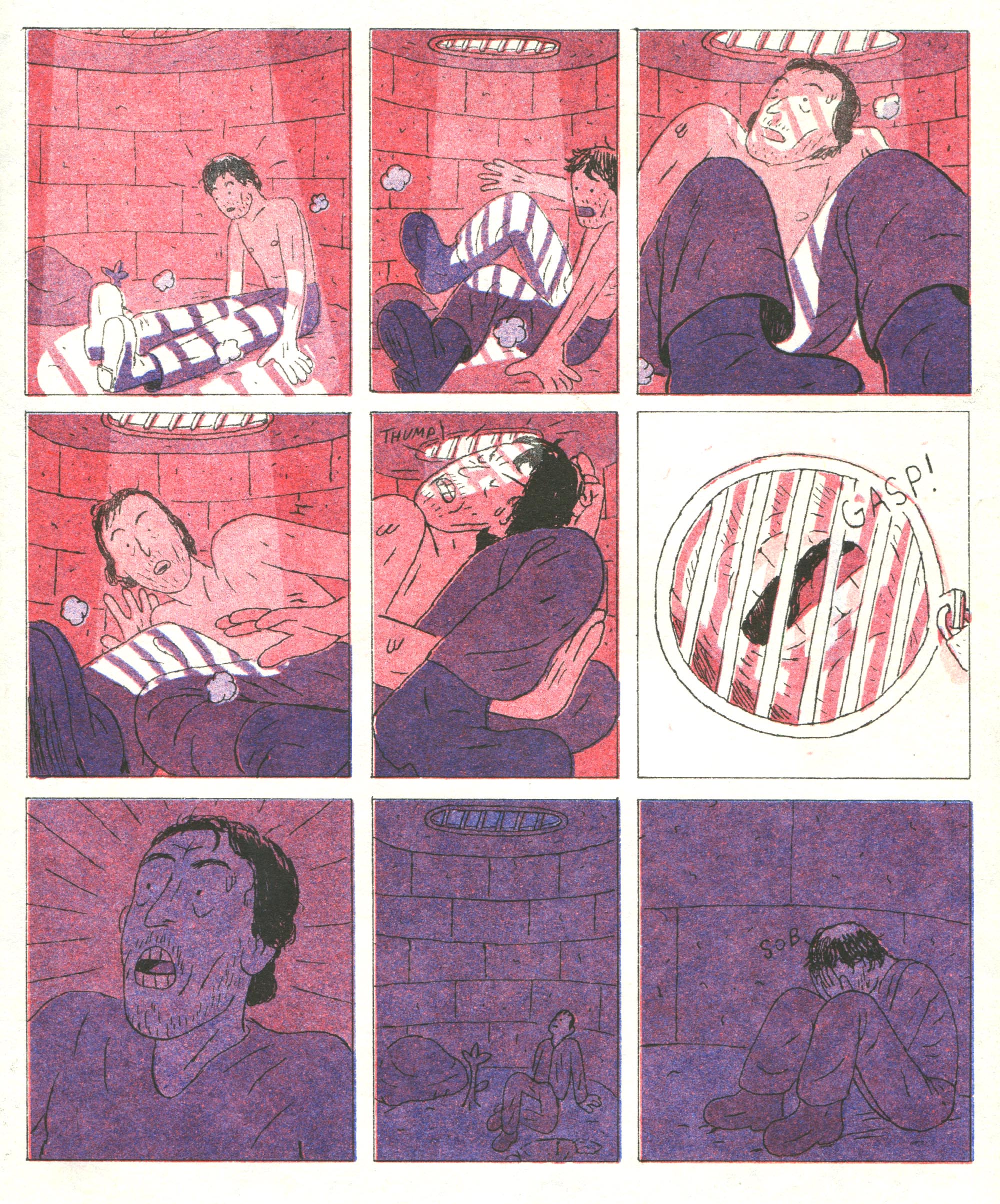 A wordless comic about a man's internal and external struggles as he endures living in a mysterious hole.