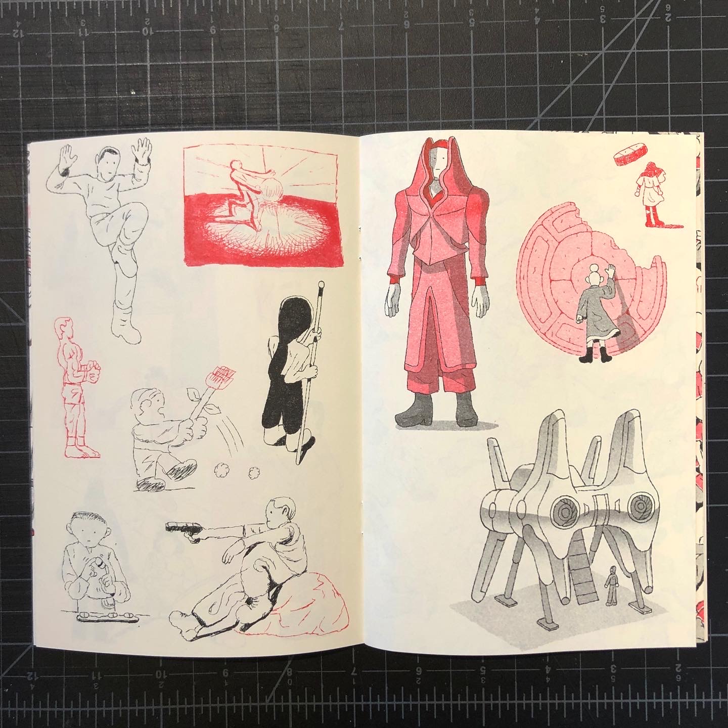 -A book of previously unpublished/unshared work from 2016-2019. -28 pages -5 1/4" x 8", -Two color riso printed
