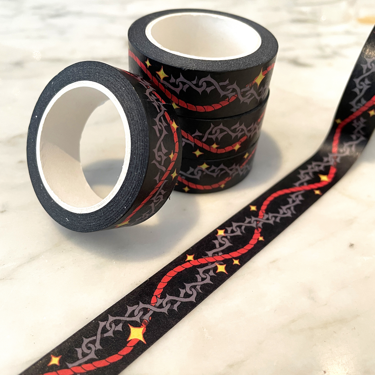 Washi Tape is thin, durable, and flexible. The tape is easy to stick on many surfaces — including wood, plastic, and metal — and is easy to remove without causing damage. Perfect for crafts and stationary.