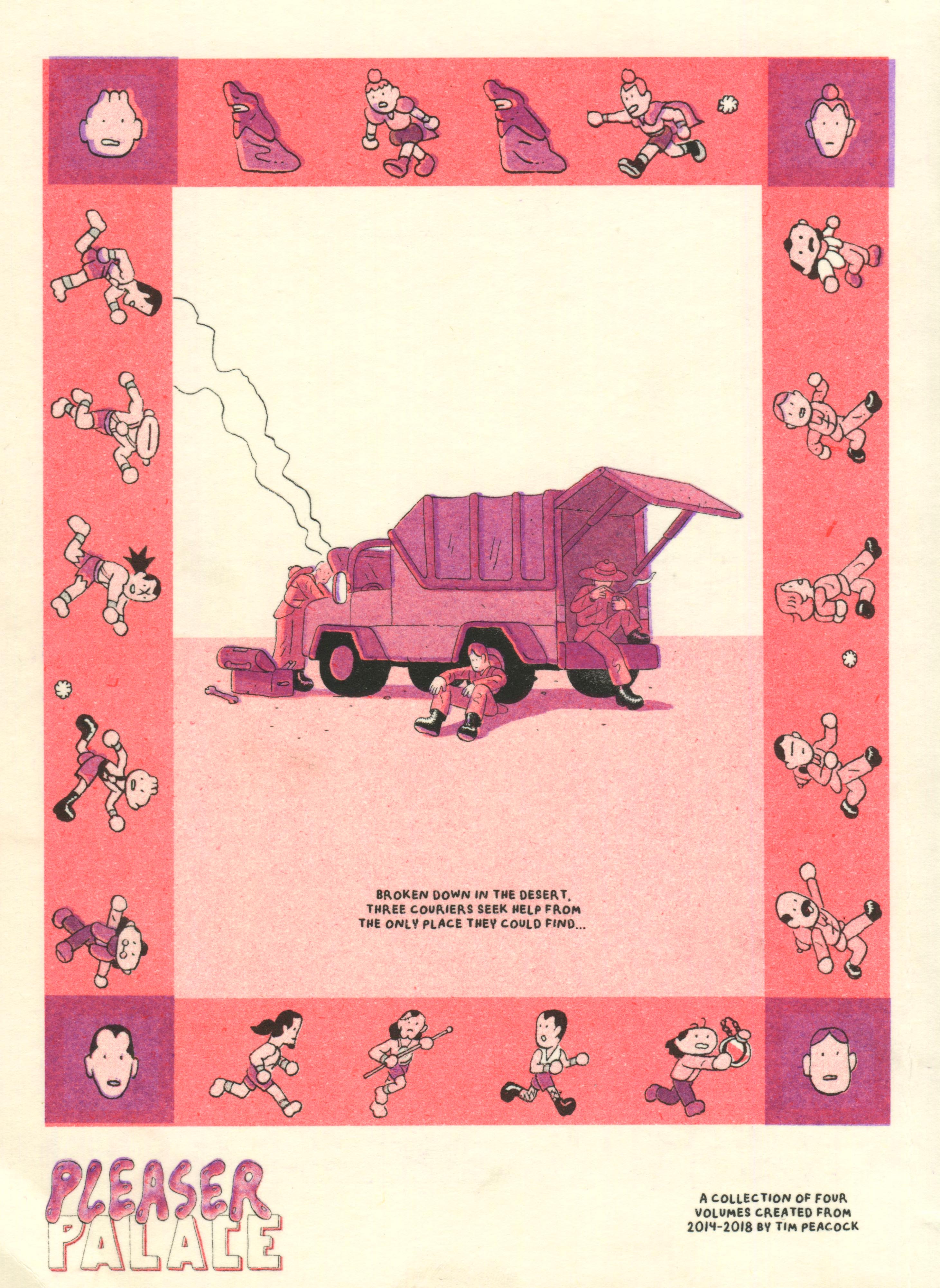 "Broken down in the desert, three couriers seek help from the only place they could find..."